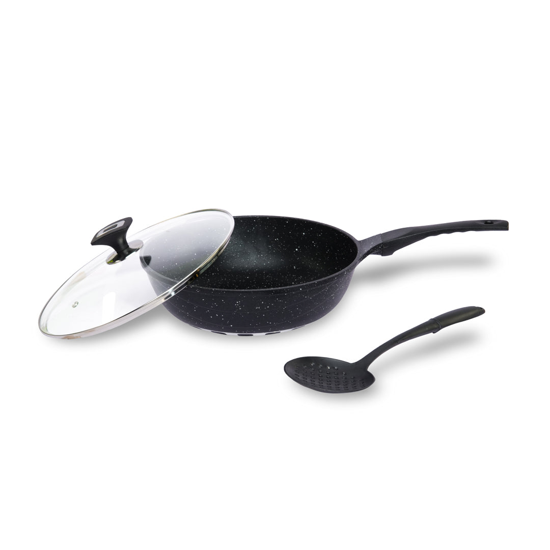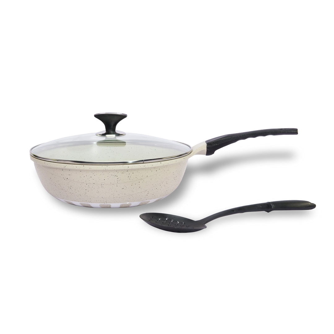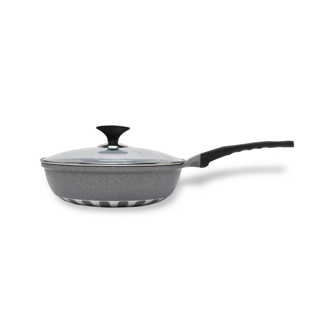 Perfect for everything from frying eggs to slow-cooking curries or searing meats, this versatile pan combines professional quality with everyday convenience. The ergonomic, heat-resistant handle makes cooking effortless, while the sleek, modern finish adds a touch of elegance to your kitchen.