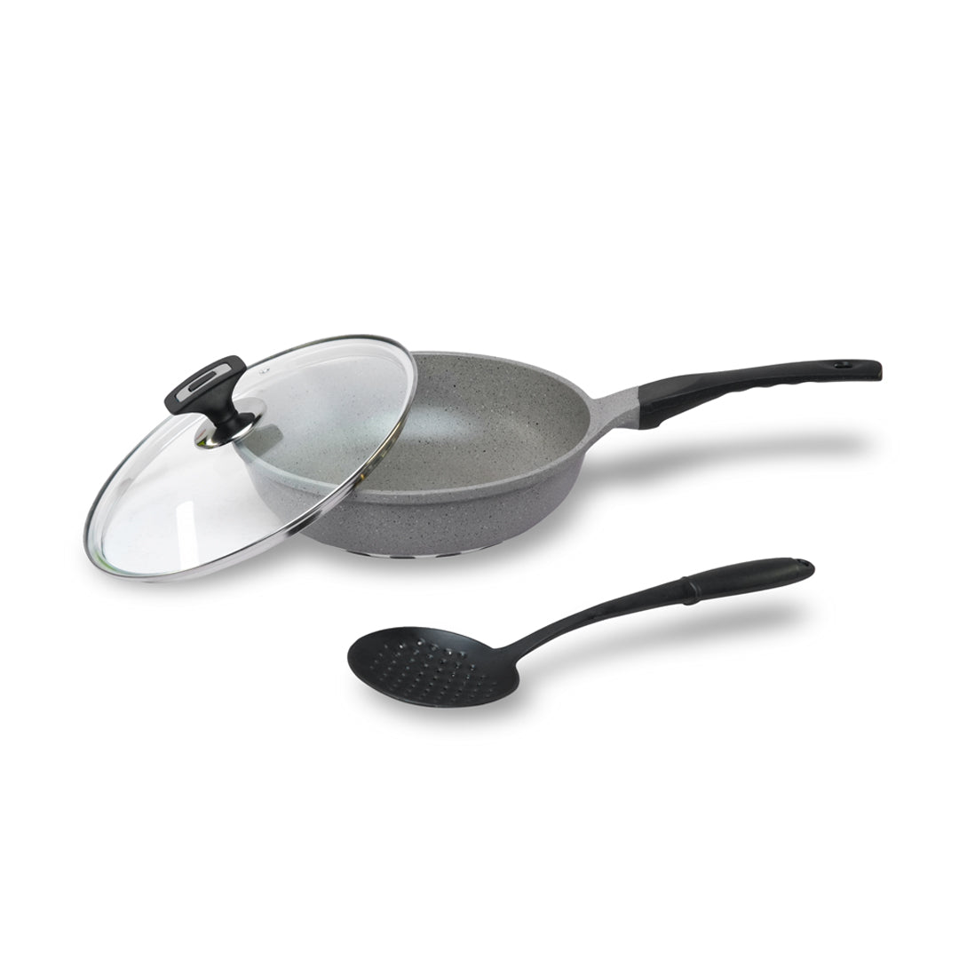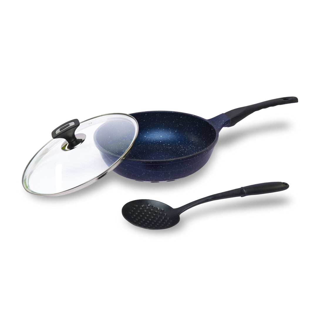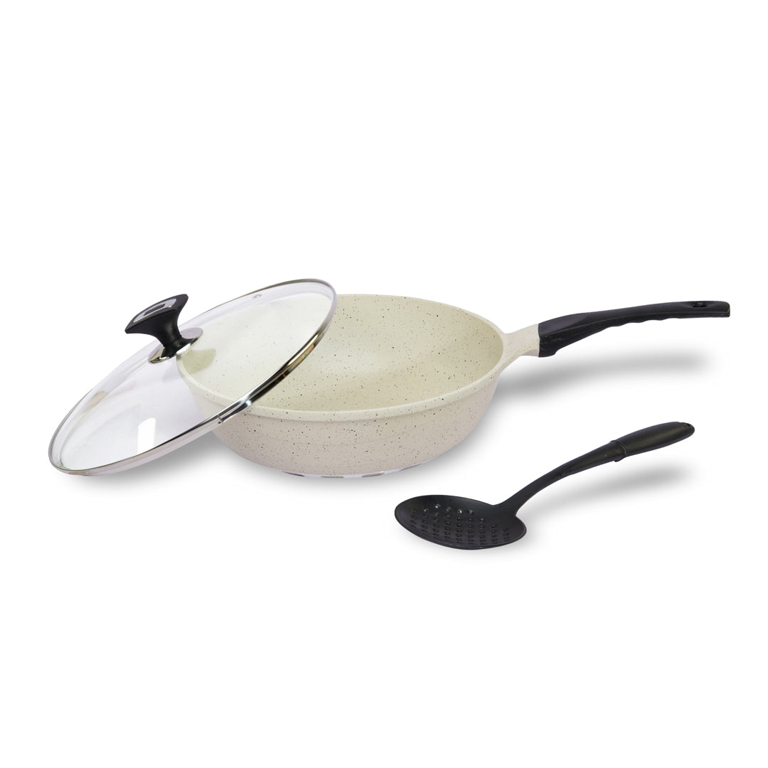 Perfect for everything from frying eggs to slow-cooking curries or searing meats, this versatile pan combines professional quality with everyday convenience. The ergonomic, heat-resistant handle makes cooking effortless, while the sleek, modern finish adds a touch of elegance to your kitchen.