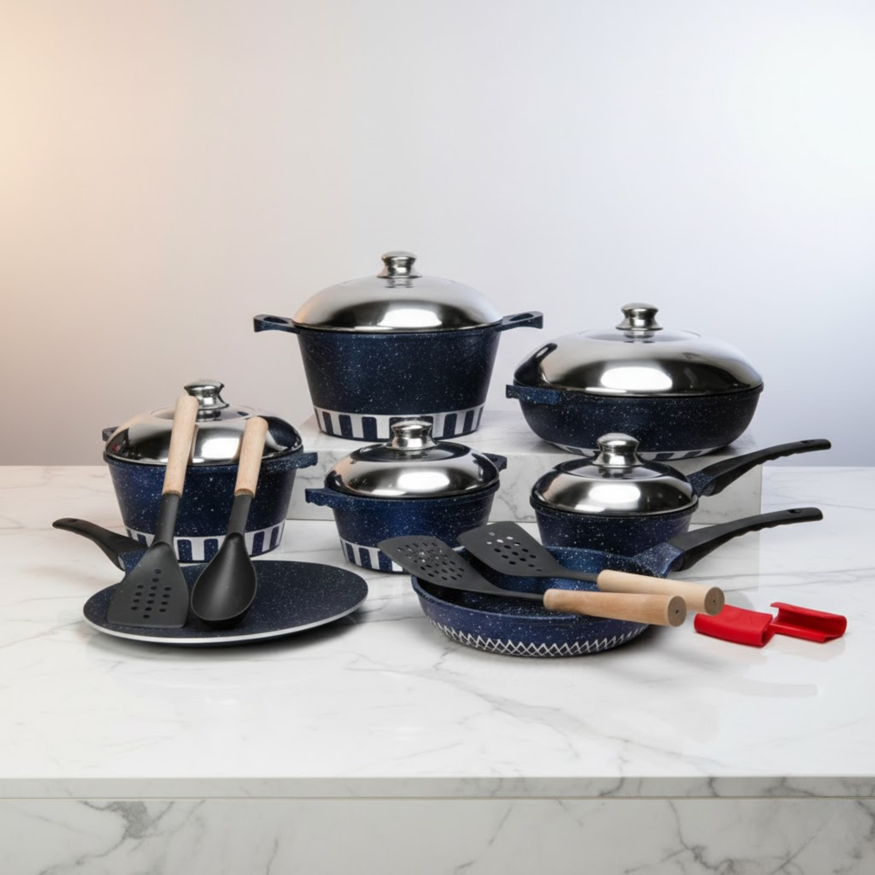 Unlike ordinary cookware that fades or warps with time, die-cast construction stays durable, scratch-resistant, and reliable for years. From everyday curries to special family feasts, this set is designed for people who care about health, flavor, and beautiful cookware that stands out on the stove and on the dining table.